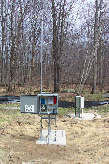 Welcome to Lake Adventure, a nice, quiet community in Pennsylvania. The sewage system for this area is composed of 4 pump stations that pump sewage water to the water treatment station. Communication between the treatment station and water pumps is handled wirelessly. We have a host radio (H) at our treatment center that is unable to directly communicate with surrounding pump stations due to the many elevation fluctuations of the terrain. To overcome this problem, we have set-up a repeater remote (R) in a central location to communicate with radios located in outlying pump stations. The repeater is assembled on a relatively high ground of the terrain in order to maximize its range. The repeater remote has been attached to a telephone pole in order to give it even greater range (see picture of repeater below). This repeater is responsible for communicating with pump stations 2, 3, and 4, which are located around the Lake Adventure Facility. The radio at pump station 4 acts as a relay for pump station 1, because the radio at this station can’t communicate directly with the repeater due to the terrain and remote location of the site Refer to the aerial picture above of Lake Adventure to get an overview of the host, repeater, and pump station locations.